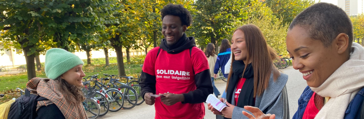 Toutes nos actions solidaires ont pour objectif de lutter contre les inégalités éducatives et le déterminisme social en s’appuyant sur l'engagement étudiant. Nous avons pour conviction que l’engagement est vecteur de réussite et de lien social et qu’il permet une “expérience étudiante" réussie. A ce titre, nous œuvrons avec l’Université de Strasbourg à sa valorisation et sa reconnaissance.